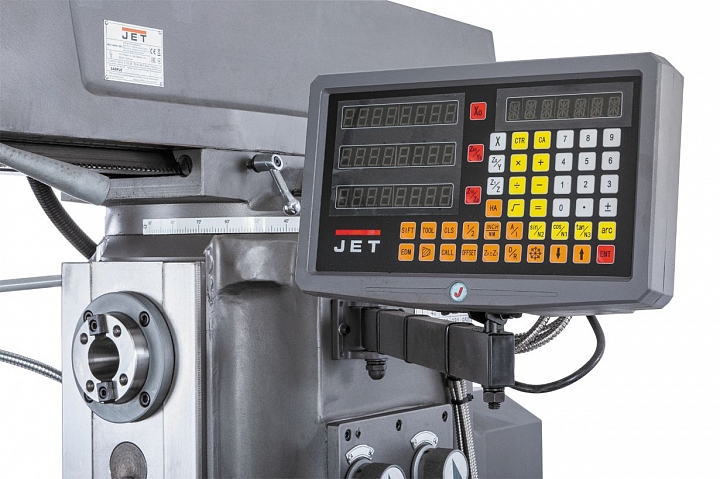 Для повышения точности и скорости обработки широкоуниверсальным станок JET JMD-1144GHV DRO оснащен Устройством цифровой индикации (УЦИ), по 3 осям, цена деления 0,005 мм, погрешность ± 1 знак, а также системой подачи СОЖ, имеет лампу освещения рабочей зоны и ряд других полезных опций.