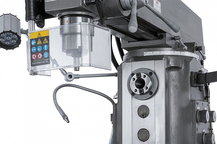 Для удобства работы фрезерная головка имеет механизм наклона влево или вправо в вертикальной плоскости на 90° и поворота консоли на 360° в горизонтальной плоскости.